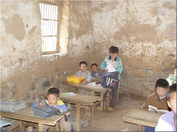 佘老師向我們介紹學校情況︰好多成績好的孩子都被迫失學,整個學校孩子的成績不理想,所以五一節也要上課。