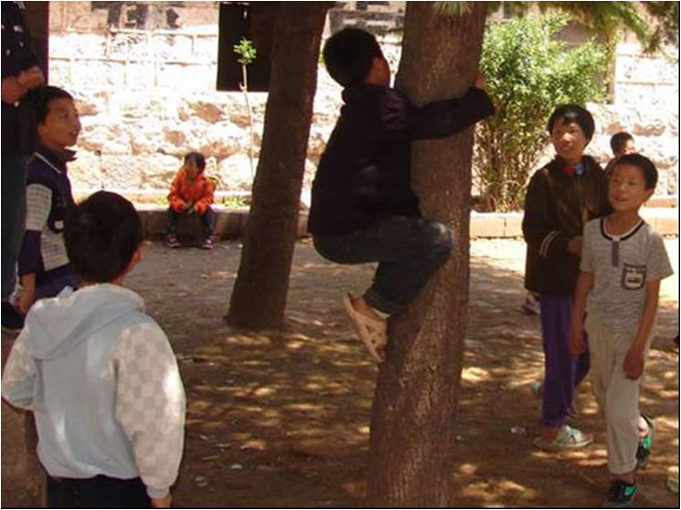 孩子的課間活動只有用爬樹來打發,這顆松樹為無數的孩子們帶來童年的歡樂