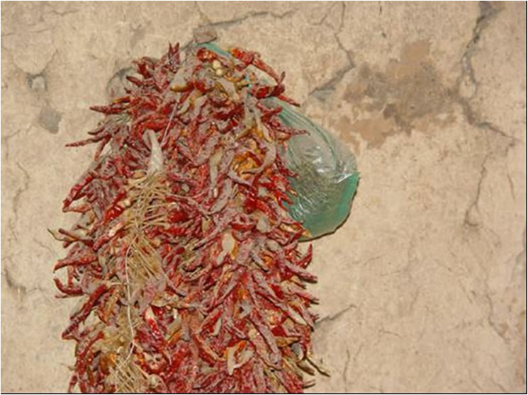 牆上掛著的干辣椒讓我想到北京川菜館的裝飾,這可不是用來裝飾的,這是一家人半年的“菜盤子”……