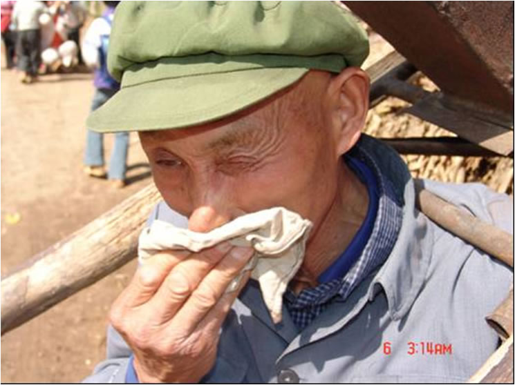 這個死亡民工的父親,孩子們的爺爺,他的眼淚不停的流,他沒有想過兒子的死該由誰負責,他不會想到誰應該負責,他只知道哭︰"以後的日子該怎么過啊……